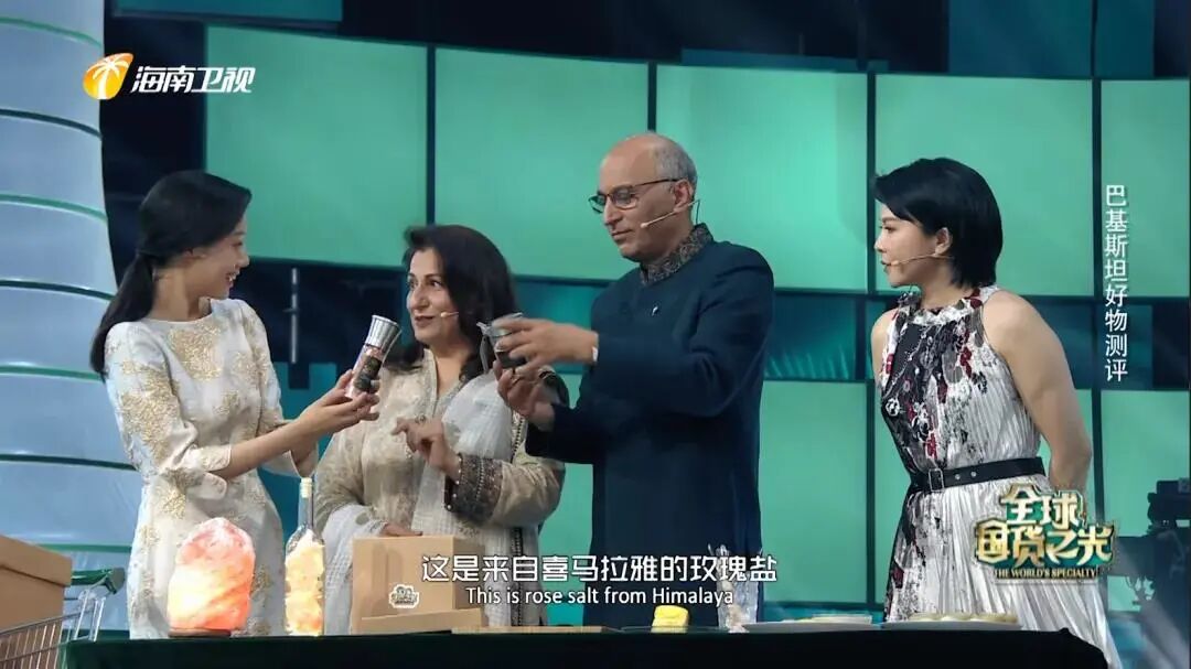 近日,巴基斯坦駐華大使莫因.哈克先生攜夫人蒞臨海南衛視綜藝節目《全球國貨之光》節目錄製現場,同時帶來的還有來自巴基斯坦的喜馬拉雅鹽、黑核桃、羊絨製品、寶石等巴國特色產品,其中聖達喜馬拉雅玫瑰鹽系列產品,受到大使及夫人的強烈推薦。大使直言:“這是我們的國寶”。